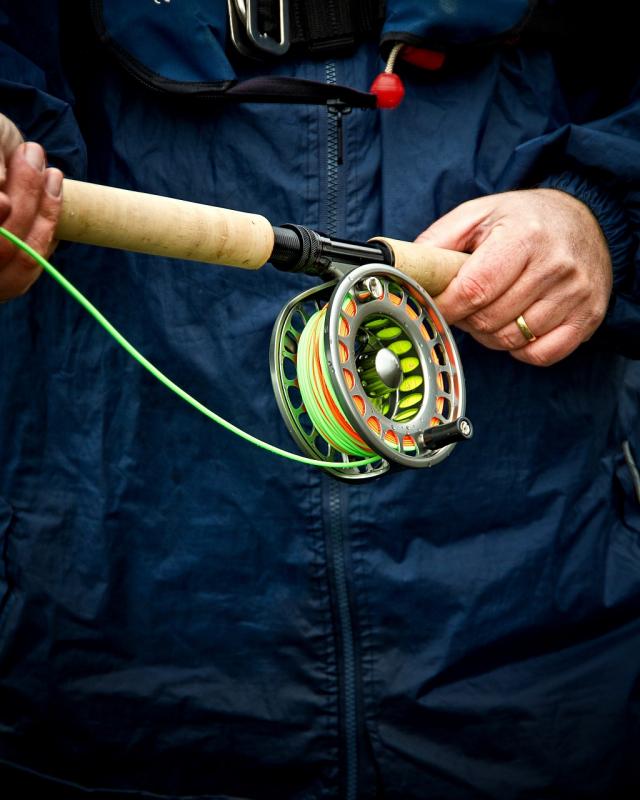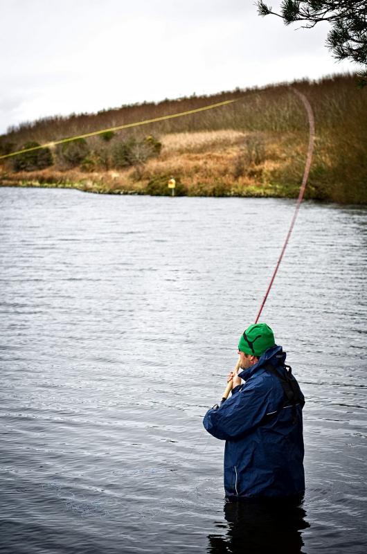 Początkowo ostrożne rzuty zaczynają nabierać energii i dystansu, w miarę jak oswaja się z wędką dokłada kolejne metry. Mimo wiatru z godziny "10", czyli prawie w twarz (ale bez przesady, to była chwila ciszy) z kija wyfruwa cały running. Całkiem nieźle jak na pierwszy kontakt z wędką, zupełny brak miejsca za i nad, stanie po pas w wodzie.