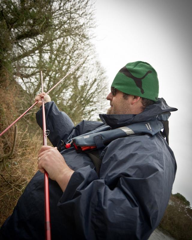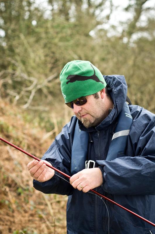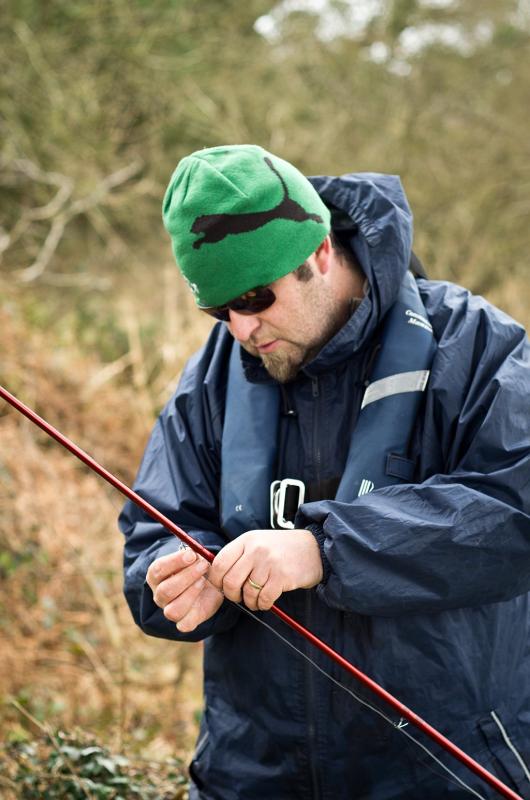 Jason wyciąga kij z pokrowca - piękny czerwony kolor blanku. Kij jest naprawdę ładnie wykonany. Jedyne na co skarży się mój kolega to ciasna tuba - musiał się po łowieniu trochę nakombinować by zmieścić wędkę z powrotem. A, i brak kropek na łączeniach, to wyraźnie nie spodobało się, szczególnie biorąc pod uwagę cenę wędki. Po za tym - zastrzeżeń nie było.