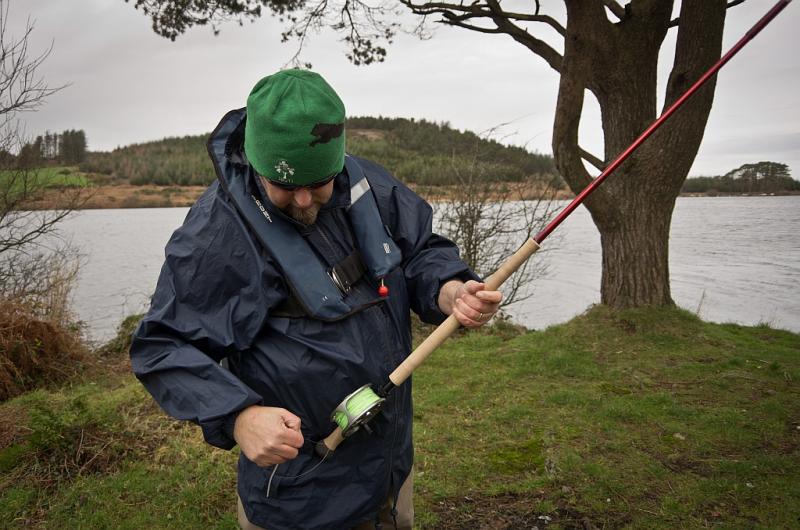 Pierwsze rzuty delikatnie, samą głowicą, by wyczuć nowy kij. Wichura co chwilę zmusza nas do przerw, trochę trudne warunki sobie wybraliśmy ![]()