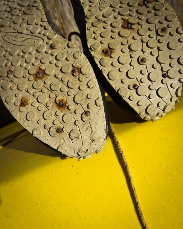 W każdym razie - guma jest miękka, zapewnia rewelacyjne trzymanie się na kamieniach i skałkach, oglonionych, oślizgłych, jak tylko porośnięte morskim glonem skałki być potrafią. Ceną za to jest zużycie, w moim wypadku - łowienia na skałkach wulkanicznych, o ostrych jak noże krawędziach - niestety, ale podeszwy dostają ostro po d.... Moim zdaniem 0- nie do czegoś takiego wybrano materiał i o ile na rzecznych kamieniach nie sadzę, by miał być jakikolwiek problem, to na ostrych skałach zużycie jest szybkie. Tu od razu zaznaczam - nie ma jakiegoś dramatu - po prostu, odpadła część "kółek" z podeszwy. Jednej. Na czubku. Moim zdaniem, patrząc jak buty "sa zjadane" to plaża, otoczaki itp nie robią na nich zupełnie wrażenia, a praktycznie każdy wypad naskałki przyczynia się do zdziesiątkowania "kółeczek".