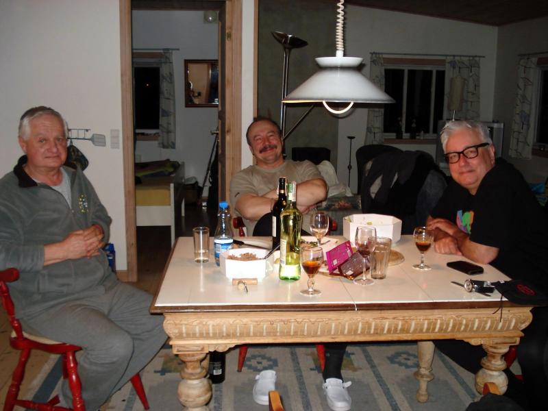 Nie samym jednak wędkowaniem człowiek żyje.szczególnie gdy temperatura oscyluje wokół zera !Wspólne kolacje,pogaduszki i wspomnienia przy godnym trunku to istotna składowa wyprawy.Pewnego wieczora Jacek,doskonały spinningista,organizator i najstarszy z nas stażem bornholmiak zaskoczył nas wiadomością o wspólnych połowach troci z profesorem Religą.