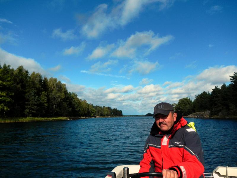 Chwile słońca sprzyjały fotografowaniu . Za kierownicą zmienialiśmy się od czasu do czasu,ale najczęściej powoził Zbyszek.W gąszczu wysepek i zatok,podobnych do siebie jak diabli nawigowanie nie jest proste . Na dalsze łowiska płyneliśmy nawet 40 minut.