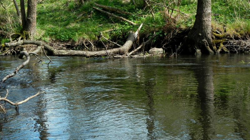 Tak więc pojechałem,trochę na próbę, blisko domu, z kijem do podpierania przy pasku, ze spinningiem i muchówką w plecaku.