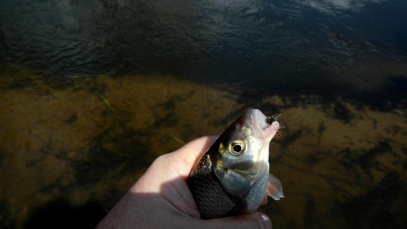 Imitacja żaby spowodowała dwa podbrzegowe bulgoty bez brania, a domkowy chruścik na 6-tce zwabił nie tego kandydata na którego stawiałem...![]()