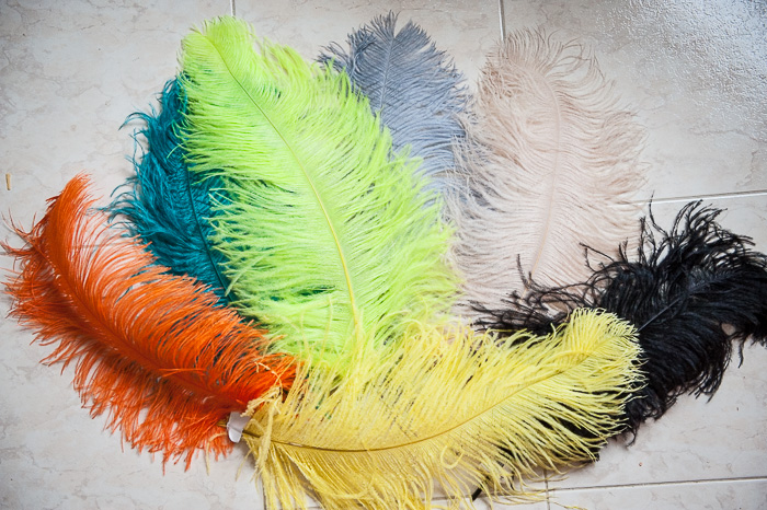 A teraz konkrety. Porównanie oferty dla fly tajerów (lewa strona zdjęcia - 2 różne pióra) oraz dla miłośników robótek ręcznych. W sklepie mamy bardzo bogaty wybór piór - marabut, struś oraz paw. W jednym kolorze do wyboru po kilkanaście (dziesiąt) różnych więc można przebierać, dobierać itd. Są też różne wielkości. Brałem strusia, te największe, najdroższe, ale są mniejsze - tańsze.