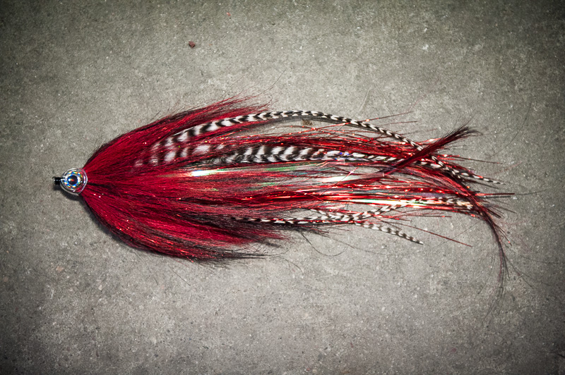 Pierwsza ever to już wspomnienie. Craft fur nawinięty ot po prostu tak na tubkę, zasmarowany UHU by nie miał sił się poruszać. Cała filozofia. Wyczesany. Do tego slinky fibre na grzbiecie i ponownie na głowę czerwony craf fur. Po miesiącu oglądania różnych stepów, testowania materiałów, sposobów układania mogę złożyć samokrytykę. Teraz zrobiłbym to inaczej. A może teraz w ogóle nie zrobiłbym już takiej muchy? Ale pierwsza ever ... jest pierwsza i tak już pozostanie. Teraz może być już tylko lepiej ...
