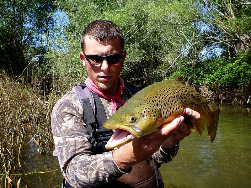 Swoja przygodę z pstrągi zaczynałem przy okazji letniego polowania na brzany i klenie w hiszpańskich rzekach. Przyłowiłem kilka pstragów i można powiedzieć, że się zapoznaliśmy. Z konieczności sprzęt na nie był wiec sprzętem brzanowo/kleniowym. Znów wędka 260, deklarowana na 12 lb. Kilka niepotrzebnie emocjonujących holi 50takow pokazało mi, ze nie tędy droga. Nie zapomnę ryby 55cm złapanej na początku lata. Ustawiła się kilka metrów ode mnie, to w trakcie głębokiego brodzenia było. Ja do góry, Loomisik coraz bardziej zgięty a pstrąg tylko powoli przesuwa się w rynnie pod prąd. Kuriozalna sytuacja. Tak to oceniam z perspektywy czasu.