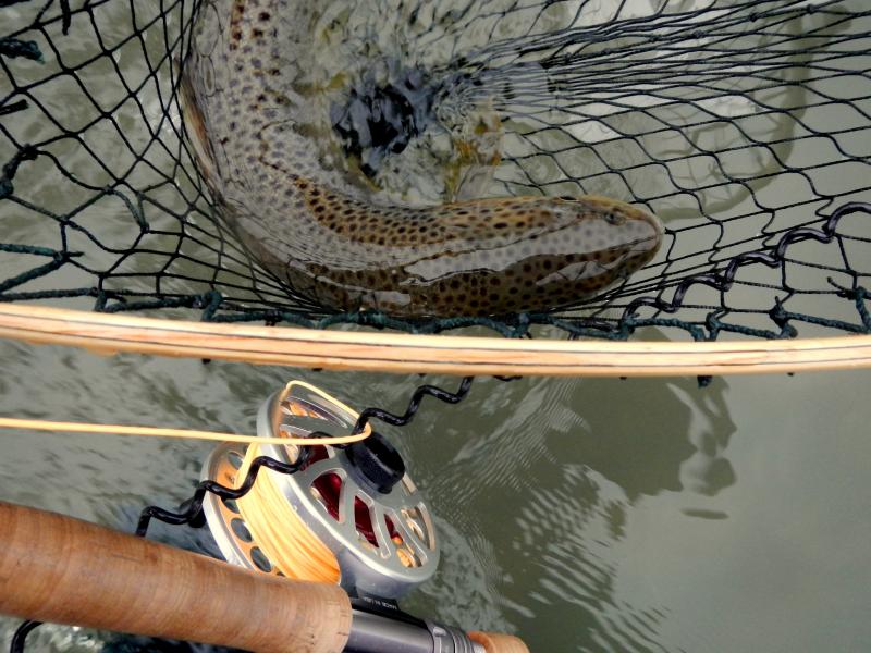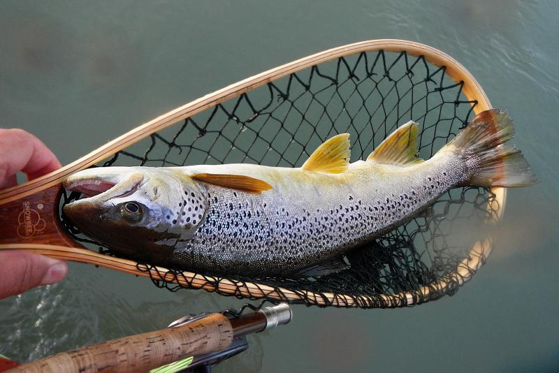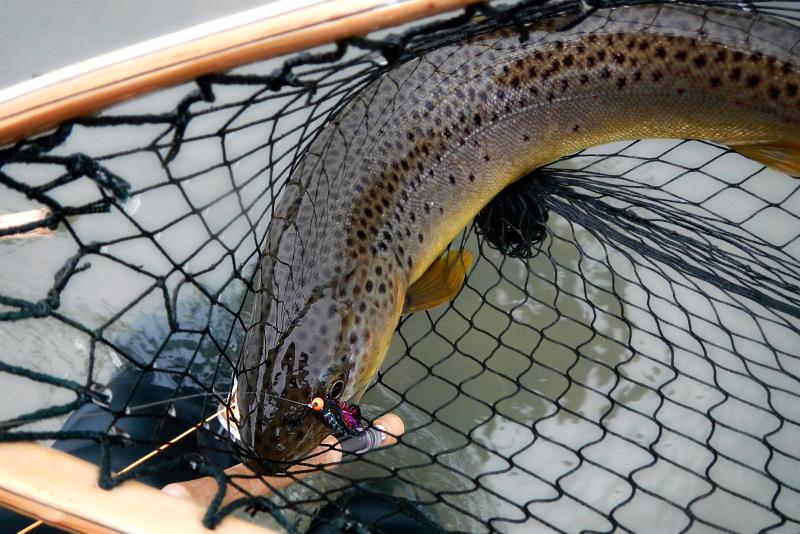 Wracając jednak do pstrągów to przyznam, że każdego dnia łowiliśmy ich kilkanaście, że największy mierzył ok. 45 cm, ale pozostałe były niewiele mniejsze, że miałem na kiju (i w powietrzu) sztukę zbliżającą się gabarytowo do nazwy klubu i że połowa strumieniowców odhaczała się w trakcie holu z pomocą silnego prądu.