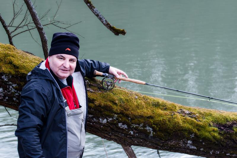 Mariusz holujący streamerowego potokowca uwieczniony zachlapanym Nikonem.
