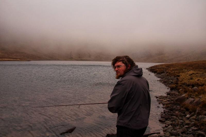 W tym czasie chmury siadają coraz niżej, momentami jest wrażenie że można je zarysować szczytówką wędki. Zbocza juz dawno zniknęły w mlecznej wełnie.