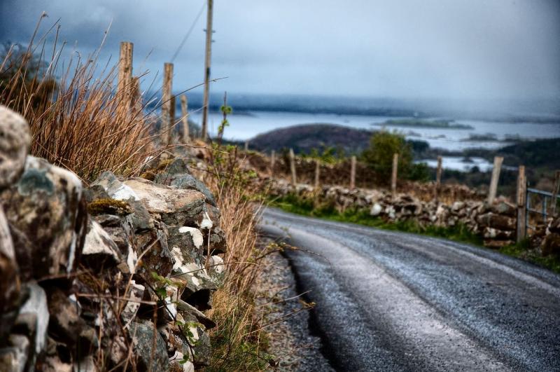 Kierujemy się przez wzgórza, stromą, naprawdę stromą drogą. Piękne widoki niestety kontrastuje cmentarz dziecięcy z czasów wielkiego głodu. Głód, wycieńczenie i choroby dziesiątkowały wtedy zamieszkujących wyspę ludzi, dzieci, jak zawsze, były najbardziej narażone. Mimo że tyle czasu minęło, jakoś zwykle na dłuższą chwilę się żyć odechciewa, miejsce ma swój klimat, bardzo mocny i napawający smutkiem. Lecz jak to w Irlandii, zmienność towarzyszy cały czas i już kawałek dalej odchmurza nas widok na zatokę, jednego z najpiękniejszych irlandzkich jezior.