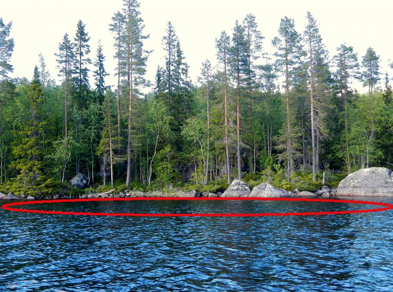 Gdy mijaliśmy niewielką zatoczkę zauważyłem dziwne zamieszanie pod powierzchnią wody, niby zbiórka, niby nurkujacy perkoz, niby zsuwajacy się do wody bóbr...Byliśmy już dość daleko, w podświadomości zanotowałem jednak to zjawisko, starając się zapamiętać miejsce.