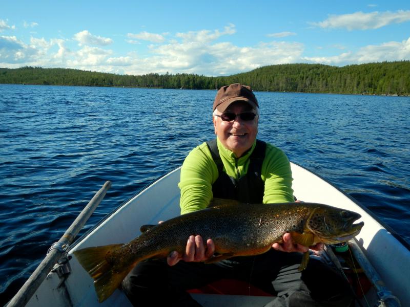 Jeszcze nigdy nie widziałem swojej linki muchowej w takiej sytuacji, korek z axisa jęczał, zestaw jednak wytrzymał i po ok. 15 minutach Piotr cudem podebrał rybę w niewielki podbierak.Okrzyk triumfu z naszych gardeł odbił się echem nad pięknym jeziorem, piątki przybite z impetem, szybka sesja zdjęciowa, pomiar szokujący wynikiem 75 cm długości i ...C&R .