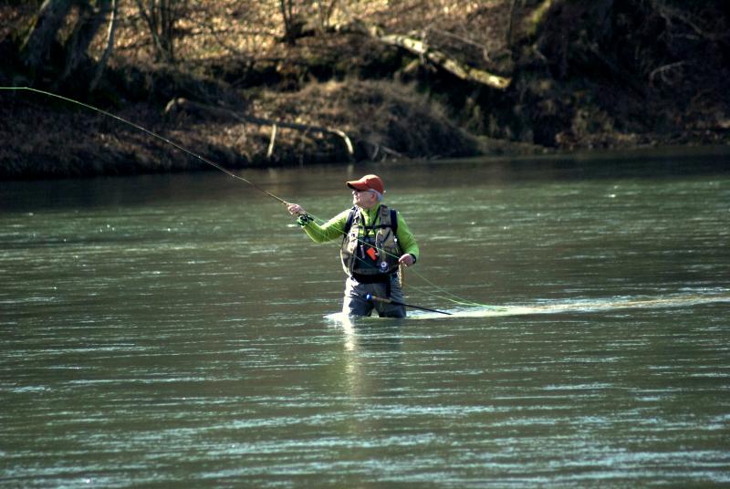 Oj, lekko nie było na tej wyprawie, oj nie było. Woda zimna i duża, rybki niemrawe. Trzeba było pstrągowi streamera prawie na łeb podać, aby zareagował. I oczywiście sprowadzić go dość głęboko, z czym miałem największy problem bo moje przynęty do najcięższych nie należały. Ale czasami się udawało, trochę z pomocą nurtu a trochę przy pomocy końcówki intermedium na Cortland Ghost.