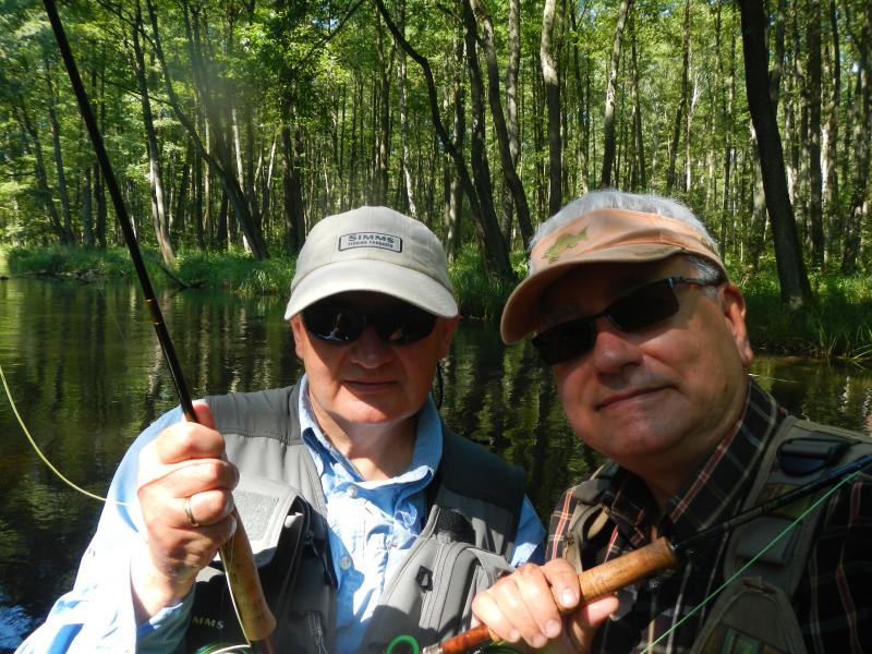 To się jednak zmieniło, bowiem po pierwsze złowiłem już w życiu satysfakcjonującą ilość ryb( no prawie), a po drugie zaś znalazłem współtowarzyszy także przedkładających jakość ponad ilość. Dwu muszkarzy w łodzi, kontemplacja ponad naparzanie, trwanie w postanowieniu...to pozwoliło bez stresu łowić na muszkę pomijając poczucie niedosytu i utraty potencjalnych okazji.