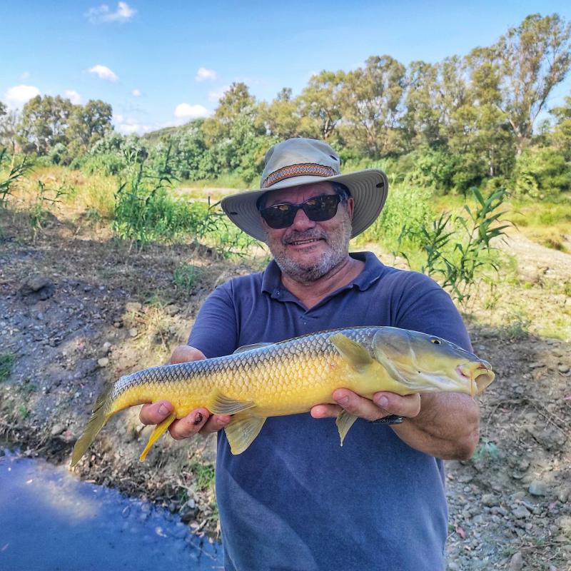 Gravel dam piętrzy wodę dla kanału, dawnej młynówki. Kiedyś woda za młynem wracała do rzeki, teraz jest prowadzona nową odnogą do nawadniania pól i sadów, w efekcie rzeka traci większość wody, w dół płynie tylko to co przesączy się przez tamę. Na samym kanale mieszkają prawdziwe smoczyska, trafiają się ryby w okolicy 3 kilo, prawdziwe smoki. W niektórych miejscach rzut graniczy z niemożliwością, pod nogami jeżyny, z boku kolce akacja a nad głową eukaliptus. Z eukaliptusami jest też jeszcze jeden problem. Ten inwazyjny gatunek nie dość że doprowadza do gigantycznych pożarów - jest to jedno z przystosowań ewolucyjnych tych drzew, potrafią przeżyć pożar, wykosić konkurencję i na świeżo nawożonym popiołem zgorzelisku wypuszczać nasiona zapewniając idealne warunki nowej generacji, to jeszcze ciągle zrzuca z siebie liście i korę. Schodzą w płatach jak gruby papier, przepełnione łatwopalnymi olejkami eterycznymi pękają z głośnym trzaskiem pod każdym krokiem. Ryby przeczulone, zeschizowane, a ty leziesz po trzeszczącej korze, jak po folii bąbelkowej, każdym krokiem powodując z daleka słyszalne trzaski.Po pierwszych dniach frustracji związanej z p[łoszeniem wszystkiego w zasiegu nauczyłem się chodzić po nich - w zwolnionym tempie. Można to sobie wyobrazic - wielki, 100kg kameleon, sunący chwiejnym krokiem, w super zwolnionym tempie. Niczym w Diunie, jeśli idziesz bez rytmu nie zwabisz czerwia - tak i tutaj, jeśli idziesz powolnym, nieregularnym krokiem, to kakofonia trzasków jakoś tam maskuje się w dzwiękach otoczenia i nie płoszysz ryb. Maskujące kolory ubrania, powolnych ruch - rybom można wejść dosłownie na głowy. Jest to dość zaskakujace, ryby potrafiące panicznie uciekać na trzaśniecie gałązki 15m od brzegu pozwalają sobie wejść na głowę, caiapać linką po wodzie - byle tylko działa się to w zwolnionym tempie. Dopiero pacniecię muchą w głowę odbiera im chęć do zabawy. Wiele też zależy od wiatru danego dnia. Jeśłi wieje w poprzek kanału i na samym kanela woda stoi - ryby są bardzo wybredne, z 20-30 podań udaje się złowić jedną, czasem dwie. Jeśli jednak wieje wzdłuż kanału, dodatkowo jeśli chwilę nie działo - robi się bardzo dobrze. Eukaliptusy mają jeszcze jedną cechę, nie zetknąłem się z nią wśród PL/IE drzew. LAtem osadza się na nich coś w rodzaju spadzi. Nie wiem w sumie czy to jakieś owady, czy naturalny proces u tych nietypowych drzew - ich liscie pokrywają sie takimi jakby białymi skorupkami. Rozmiarów +- jak główka zapałki, te białe narośla, niczym pąkle na morskich kamieniach porastają liscie eukaliptusa. Są słodkie! Gdy po dłuzszej przerwie powieje wiatr i z drzew zaczynają sypać się na wodę liscie - ryby dostają na tą wegetariańską "rójkę" amoku. Nie zwracają uwagi na nic, na nikogo. Mucha, byle biała, wpada do wody i lecą do niej ile sił, 2, 3 sztuki czasem, na wyścigi, która pierwsza. Zupełne wariactwo, jednak przy częśtym jeżdżeniu nad wodę można 2-3 razy w sezonie trafić na takie widowisko. Mój rekord? +-25szt spod jednego drzewa, zakończone karpiem cwaniakiem który dopiero po dłuższej namowie zdecydował się wejść w podbierak, ale o tym może następnym razem.