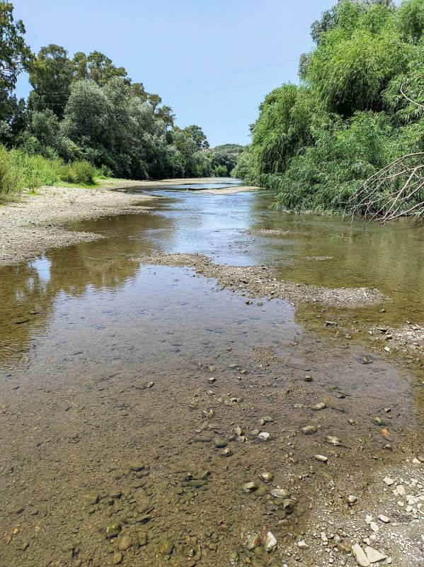 Wściekły upał, do tego ostatni deszcz w kwietniu, w efekcie pod koniec lata deficyt wody jest potężny. Sytuacji nie pomagają ciągnące się wzdluż doliny rzeki sady mango i awokado. Kilometry drzewek, każde ze spryskiwaczem zraszajacym drzewo podczas upałów - w efekcie rzeka jest zarzynana w najtrudniejszym dla niej momencie.