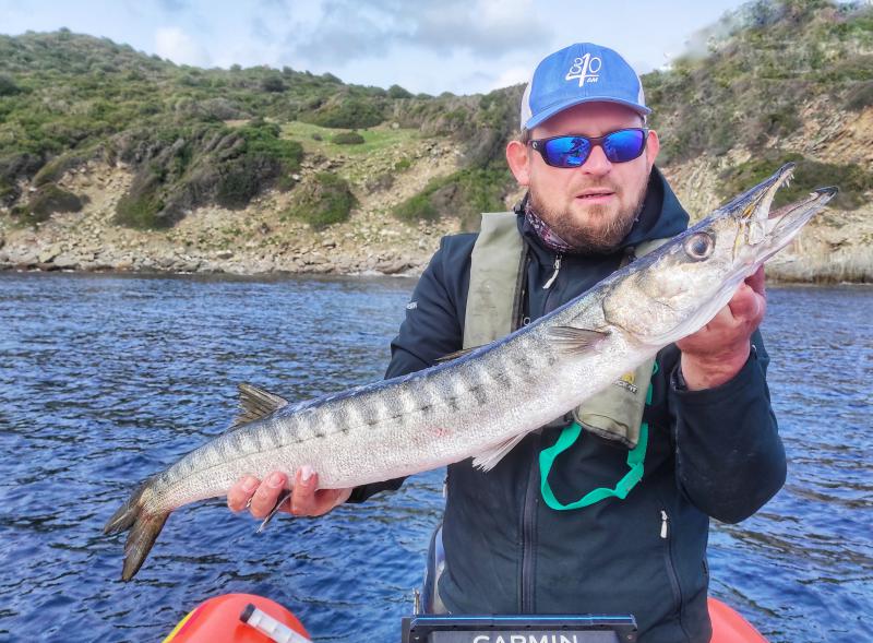 Wreszcie pakujemy w siatkę kolejną niezłą barracudę. Tak jak przez lata omijały mnie te ryby, tak teraz łowię je dośc regularnie, w dobrych rozmiarach. Cieszy bardzo.