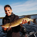 Następnego dnia z Moniką obławiamy pasy trzcin, płytkie zatoki, ale wszędzie wieje pustynią, nie widać nawet śladu drobnicy. Słoneczna pogoda również nie ułatwia łowienie, jak wiadomo szczupaki nie lubią prześwietlonej wody na płyciznach. Próbujemy trollingu na szczupakowej 4-6m głębokości, ale łowię tylko jakiegoś kajtka. Do południa łowimy pojedyncze średnie sztuki kiedy spotykamy chłopaków na drugiej łodzi, którzy informują, że brania są powyżej 10 metra. Na potwierdzenie notują przy nas branie i na pokładzie ląduje średniak. Chcąc nie chcąc trzeba się przestawić na głębokie. Trochę sobie inaczej wyobrażałem to szczupakowanie, widziałam siebie z dżerkówką z grubymi szczupakami goniącymi jerka. Tak jak bolenie uwielbiam łowić z powierzchni, tak samo kwintesencją szczupakowania jest dla mnie łowienie ich dżerkówką na płyciznach. Niestety z rybami tak bywa że trzeba się dostować do nich, a nie na odwrót. Mam lekko mieszane uczucia, nigdy nie łowiłem w takiej studni, a dodatkowo jestem kompletnie nieprzygotowany do takiej metody. Wziąłem z kraju chyba wszystko oprócz głęboko chodzących przynęt i dopalaczy.