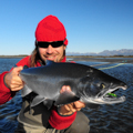 Po chwili zaczęło padać, widać że zmiana warunków atmosferycznych na krótki moment uaktywniła ryby które miały ochotę skakać do szybko przemieszczających się przynęt. To najładniejsza ryba złowiona na tym wyjeździe z ręki.