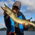 Jedziemy po krawędzi głównego plosa na głębokości ok. 12m i jakoś czuję bezsens tego łowienia. W głowie zaczyna kiełkować myśl, że chyba trzeba spadać i szukać ich na mniejszej części jeziora gdy nagle branie notuje Monika. Może jednak zostaniemy jeszcze chwilę. Trafiamy w dobre miejsce bo na echu rysują się grube, zbite ławice sielawy. Później okazuje się, że są tak zbite bo wokół nich jak wilki przy owcach czatują szczupaki. Brania notujemy głównie w pewnym oddaleniu od ławic i jest ich dużo. Wystarczy znaleźć wodę o głębokości między 11-14m i praktycznie wszędzie są szczupaki, choć jedno miejsce wyróżnia się pod względem ilości brań. W każdym przelocie notujemy po 2-3 brania. Co z tego jak na grubym sprzęcie zapina się co 5 ryba, a wyjmuje się co 7. Pod koniec pobytu stwierdziliśmy, że gdybyśmy wykorzystali wszystkie brania wyjelibyśmy ok. 1000 ryb. Niestety większość ryb jest w przedziale 55-75cm, choć nadzieje miałem spore bo pierwsza moja zacięta ryba z głębokiej miała z 80cm, choć niestety wypięła się przy łodzi.