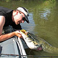 Czas do wylotu szybko minął i 23 maja startowaliśmy z Okęcia. Na miejscu odebrał nas Leszek z firmy Zew Przygody, który sprawował nad nami pieczę przez cały okres pobytu i ruszyliśmy w 200km podróż samochodem. Na miejsce dotarliśmy ok. 18, szybko zmontowaliśmy sprzęt i wypłynęliśmy na krótki rekonesans. Dość szybko zorientowaliśmy się, że szczupaków na płytkim jest bardzo mało, pojedyncze brania nie nastrajały zbyt optymistycznie, jedynie Friko łowi na slidera życiówkę, pięknego okonia 47cm.