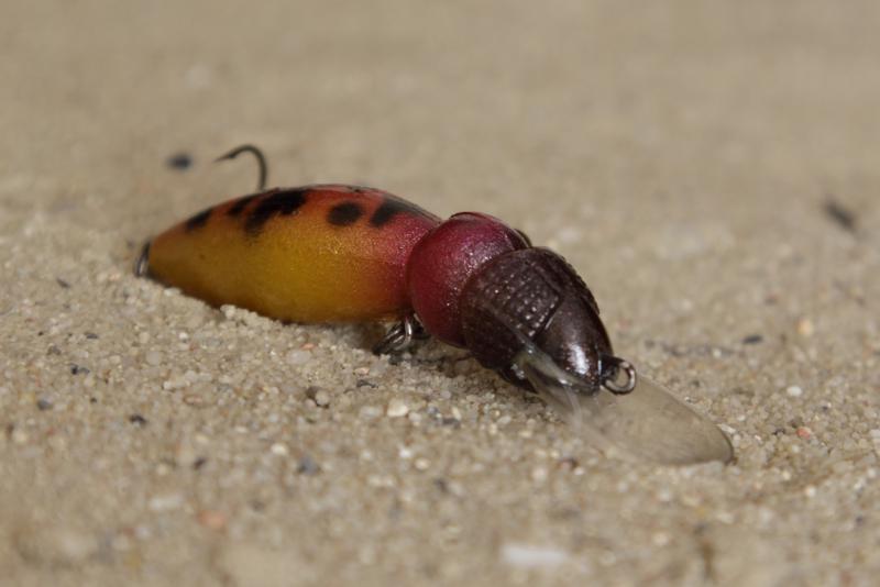 Tym razem coś z rękodzieła, korpus drewniany. Nie jestem w stanie rozstrzygnąć czy to wobler Taps Michała czy też Tomka Orlikowskiego. Niemniej kolejny model wzorowany na wobku Yo-zuri.