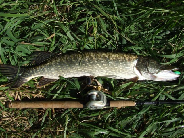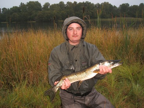 Poza tym dodam, ze ten grubas siedzial na wodzie do kolan i nigdy bym sie nie spodziewal takiej ryby na plyciznie. Moge sobie to wytlumaczyc tym, ze byla pozna godzina (okolo 6:30) i robilo sie powoli ciemno, albo poprostu nie bal sie, bo nic mu tam nie zagraza. Probowalem wczoraj kusic leniwe szczupce jackiem na rozne sposoby (w tym splawikowalem), ale bezskutecznie. @Wisnia konsekwentnie gumowal i ostatecznie na koncie mial dwie ryby takie 40-50cm plus kilka spadow.