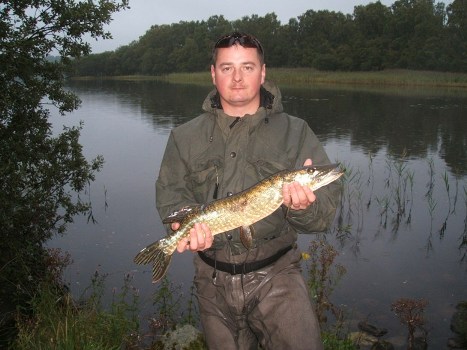 Dostalem cynk ze loski juz weszly do naszej rzeki (River Deveron), wiec umowilem sie z @Wisnia na sobote. Niestety nasz informator znowu dal d..., bo informacja chyba byla wyssana z palca. Pol dnia stracilismy blakajac sie nad rzeka od plani do plani i nie dosc, ze nie bylo ani jednego brania, to nawet nie zauwazylismy pojedynczej ryby :angry: Po poludniu przenieslismy sie na River Isla na pstragi. @Wisnia stwierdzil, ze jednak woli grzyby i dal nura do lasu, a ja wzialem muchoweczke i probowalem na mokra muszke. Wial porywisty wiatr, wiec, mialem powazne klopoty z zestawem. Udalo mi sie wyjac kilka krociakow, ale przeciez nie po to tu przyjechalismy. Po 15 sie poddalem i pojechalismy nad jezioro zrobic łaskę (zeby tym razem nie bylo watpiwosci) szczupakom. Ja zlozylem jerkowke a Tomek wzial spinning i poszlismy nad jezioro. Juz na samym poczatku mialem delikatne skubniecie na slidera 10. Tomek wszedl na moje miejsce i zaczal kusic szczupaka ripperem. Dopiero za 6-stym razem ryba zapiela sie na tyl solidnie, ze dala sie wyholowac (5 pierwszych atakow bylo nie do zaciecia, tak delikatnie skubal). Ja znowu odnotowalem pukniecie w slidera, ale bez powtorki, wiec postanowilem wricoc do samochodu i przezbroic sie w muchowke, bo wszystko wskazywalo na to, ze szczupak biora bardzo delikatnie, wiec mucha powinna byc idealna. Przeciagnalem przypon przez przelotki i pociagnalem za niego, zeby likan przesunela sie przez przelotki i nie tracic czasu. Ale zrobilem to zbyt gwaltownie, linka musiala zablokowac sie w jednej z przelotek i zlamalem czop od drugiego segmentu w moim czteroskladzie #%@&*%$^!!! Wiec przeprosilem sie z jerkowka. Wskrocie podam, ze ryby wciaz zerowaly ale bardzo delikatnie. Pod wieczor zanotowalem potezne kopniecie, a po powtorce potezny szczupak przewalil sie wyrywajac mi kij z reki i luz... To juz trzecie bydle w tym sezonie ktore pokazalo mi pletwe odbytowa :angry: W ramach nagrody pocieszenie za wytrwalosc udalo mi sie wyjac na koniec szczupka przeszlo 70cm a Tomkowi cos odgryzlo ponownie ogonek od kolejnego rippera i na tym koniec. Teraz trzeba przemyslec co tu zrobic, zeby ograniczyc ilosc spadow i naprawic muchowke...