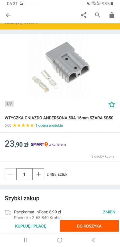 0 bony20 Opublikowano 11 Czerwca 2021 Zgłoś Udostępnij Opublikowano 11 Czerwca 2021 Zamówiłem LifePo4 24ah:który można ładować prądem 20A.Akumulator zamontowałbym w skrzyni covera i mam pytanie macie namiary na jakieś gotowe końcówki na połączenie M8 z przewodem od zasilania echa tak żeby nie wyciągać akumulatora do każdorazowego ładowania prądem 20A. Cytuj Odnośnik do komentarza Udostępnij na innych stronach Więcej opcji udostępniania...