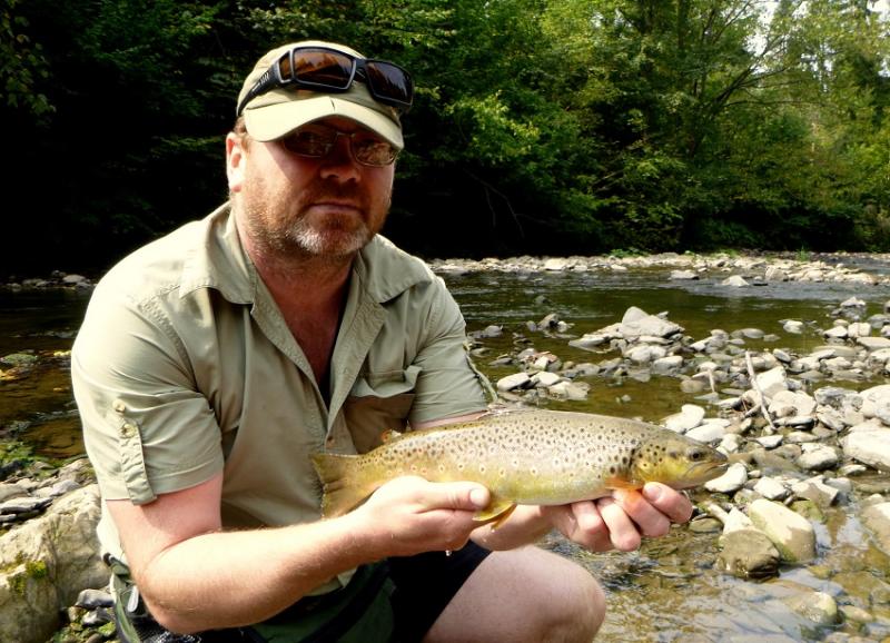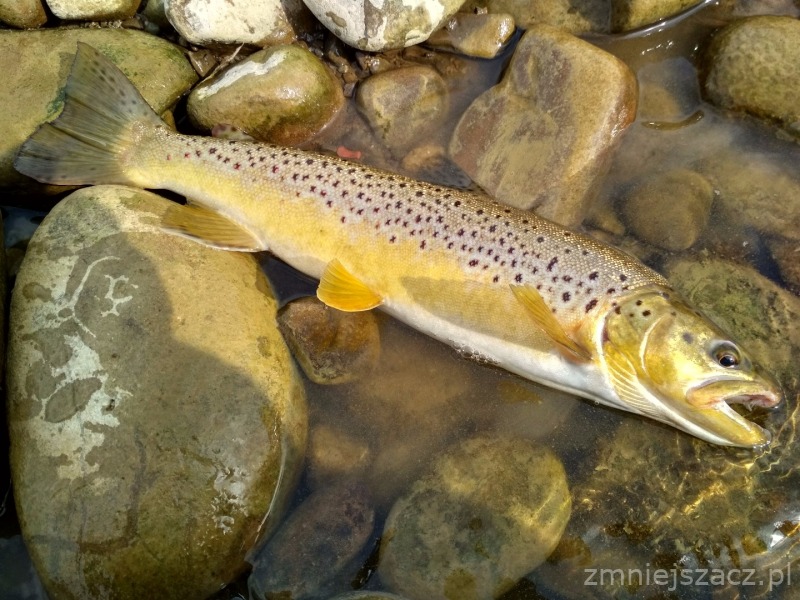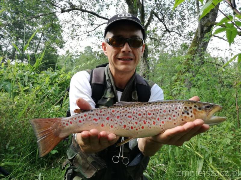Guzu Opublikowano 14 Sierpnia 2018 Zgłoś Udostępnij Opublikowano 14 Sierpnia 2018 (edytowane) W wyniku roznych okolicznosci zyciowych wyladowalem z wedkami i rynsztunkiem nad woda pstragowa przy upale 35 stopni.Poltora dnia dalem rade, skwar zwyciezyl i jeden dzien odpucilem miedzy 13 a 16ta. Ryby udalo sie znalezc. Zyja i maja sie niezle. Rzeka plynie... Kwiaty w rzece rosna... Ryby pochowane w najglebszych nurtowych plosach niespecjalnie gloduja. Co widac po tym 50taczku na zdjeciu ponizej. Zycie uczy.Okazuje sie, ze moimi "muchami" mozna w miare skutecznie kusic ryby na naprawde glebokich miejscach. Wymaga to zmodyfikowanego zestawu (cienka plecionka zamiast zylki) i sporego zaciecia. Pouczajace zajecie. Przy okazji polowilem sobie nowym kolowrotkiem, z ktorego jestem zadowolony i sie polubilismy Do plecioneczki akuratny Nastepnym razem, jak mi przyjdzie walczyc w takich warunkach, to wezme dluzsza wedke. Teraz liczylem jednak na chocby troche "normalnego" lowienia na plytkim...ale tam na razie nic nie ma Pozdrawiam Edytowane 14 Sierpnia 2018 przez Guzu 31 Cytuj Odnośnik do komentarza Udostępnij na innych stronach Więcej opcji udostępniania...