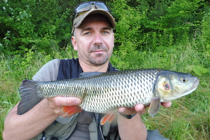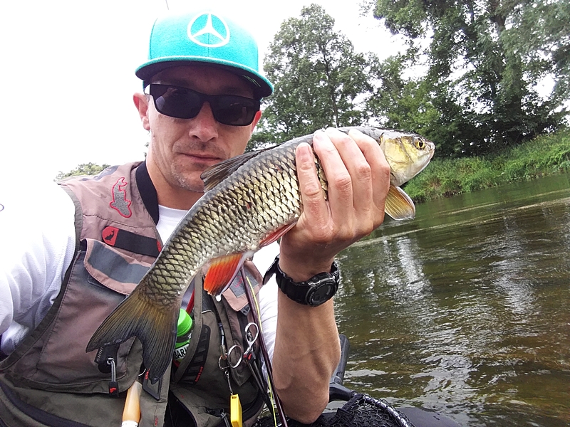 tomi101 Opublikowano 12 Czerwca 2018 Zgłoś Udostępnij Opublikowano 12 Czerwca 2018 Wczoraj byłem i ja trochę posmużyć.Bardzo niski poziom wody i praktycznie brak uciągu nie dawały większych szans na powodzenie.Jednak jak się jechało 100+kilometrów na łowisko to trzeba walczyć.Mimo takich warunków,ryby interesowały się wabikami.Wypracowałem kilka widowiskowych,ale pustych, brań.Przeważnie kończyło się na zaniechaniu ataku w ostatniej chwili,bądź oglądaniu i odprowadzaniu przynęty.Konsekwencja w działaniu jednak przyniosła skutek i kilka ładnych ryb udało się skutecznie zaciąć i wyholować. Był też jeszcze boleń ,ładny okoń i gruby jaź.Sprzęt bez zmian : Dragon Express Specialist 30 /3,9m ;Blue Arc 9400, P-Line CX Premium 0,20mm i Mrówka 35mm własnego wykonania.Mimo dość solidnego sprzętu, dwie ryby odpłynęły z woblerem Pozdrawiam Tomi 42 Cytuj Odnośnik do komentarza Udostępnij na innych stronach Więcej opcji udostępniania...