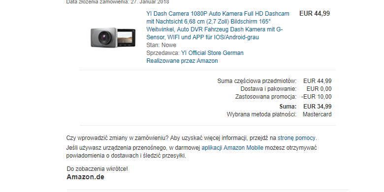 godski Opublikowano 27 Stycznia 2018 Zgłoś Udostępnij Opublikowano 27 Stycznia 2018 Ja myślałem że tu jest miejsce terapii https://www.amazon.de/YI-Nachtsicht-Bildschirm-Weitwinkel-Android-grau-1080P-DashCam-C10-Grau/dp/B073GTDBZ8/ref=sr_1_13?ie=UTF8&qid=1517041370&sr=8-13&keywords=yi+kameraWidzę cenę 44 EUR a to 185 zł a nie 150. Cytuj Odnośnik do komentarza Udostępnij na innych stronach Więcej opcji udostępniania...