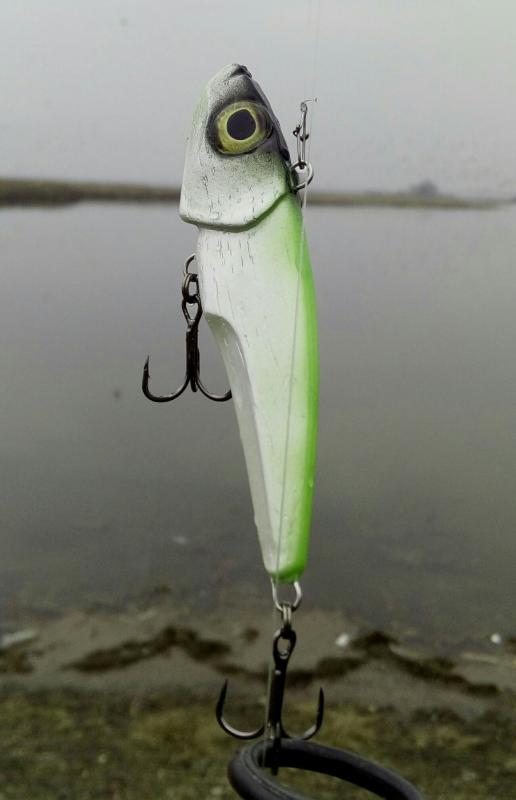 Przerzuciłem wszystkie pudełka z przynętami w jednym miejscu.. Złapany w ostatnim rzucie na blachę z chwostem własnej produkcji. Zagryzł z opadu daleko od brzegu w połowie głębokości. Miarka pokazała 80 cm. Szybkie zdjęcie