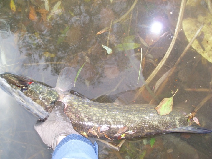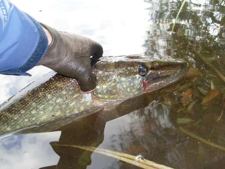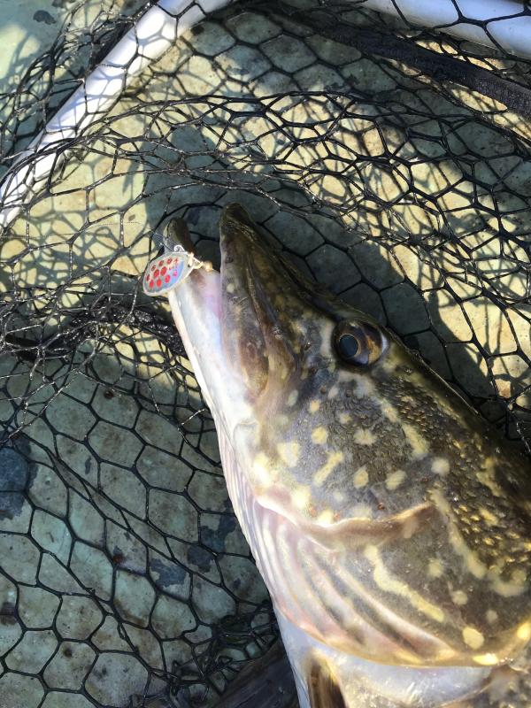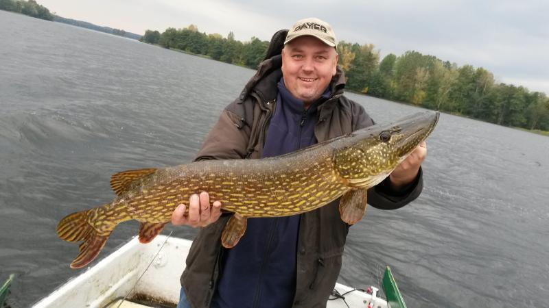 Dzisiaj w końcu po przerwie spowodowanej operacją i potem rekonwalescencją, udało mi się wyskoczyć na ryby. Niestety okoni nie doświadczyłem, ale złowiłem dwa szczupaki, z czego jeden 80 z małym plusem. Ryba nieprzeciętnej urody, bo jak na tą długość, to już niezły grubasek ;)  Skusił się tradycyjnie na Meppsa 3.