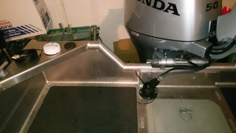 Zaczep silnika jest stalowy (o ile dobrze pamiętam). Tak naprawdę nie ma znaczenia, czy będzie z boku, z przodu, byle z daleka od ferromagnetyków i przewodów w których w czasie jego działania płynie duży prąd. Musisz też ustawić w miarę równolegle do kila i skalibrować.