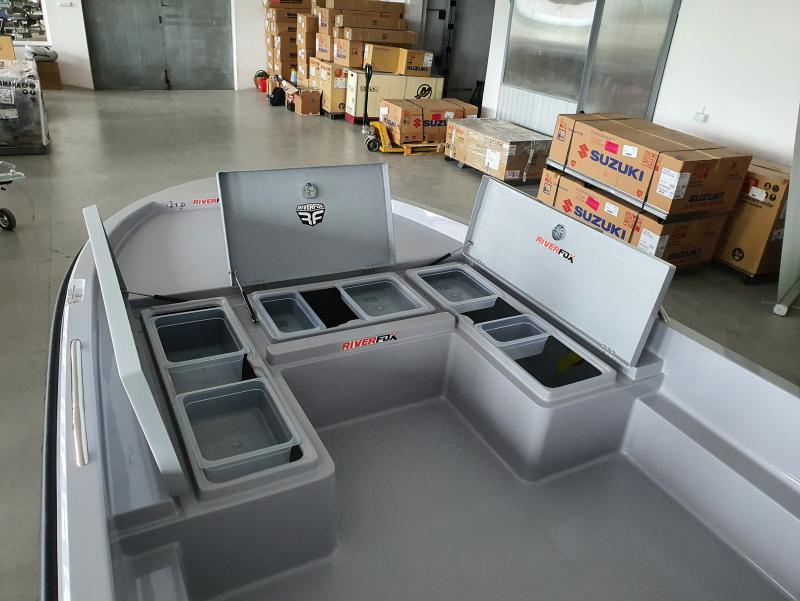 Ja to widzę trochę inaczej. Wszystko, czyli wędki, przynęty itp. pochowane po bakistach na stałe, łódka w garażu podłączona do ładowarki i jak jest chęć to jedziemy...no może po drodze tankowanie i jest super :)   Na mojej nowej RIVERFOX 500 dwie osoby mogą łowić z przedniego pokładu obok siebie...co w niektórych warunkach jest najwygodniejsze i nieraz nawet konieczne...ale ona ma 203 cm szerokości.
