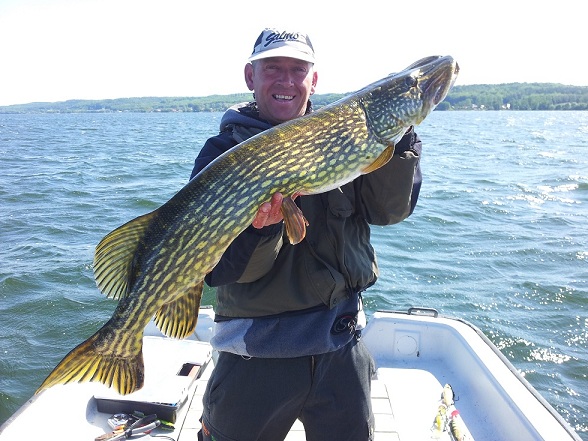 98 cm 15lb na kijku MP Predator 2,40 15-50 gr w Szkierach Św. Anny czerwiec 2012. Prawie wyrwał kij z ręki tak uderzył.