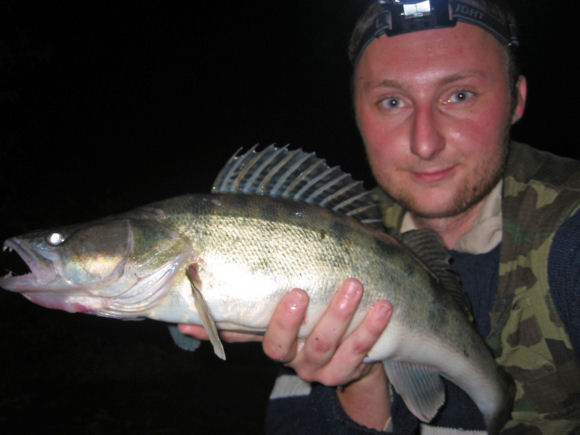 Rognis jest czlowiekiem, którego artykul w Wiadomościach Wędkarskich, o nocnym łowieniu sandaczy, ostatecznie przekonał mnie żeby w końcu spróbować tej sztuki !!!!!! Wiele razy czytałem bądź slyszałem o sandaczach łowionych w nocy na spinning, jednakże nigdy jakoś specjalnie do tego mnie nie ciągnęło. W końcu nadarzyła się ku temu okazja. Pewnej sierpniowej nocy wylądowąłem z kumplem na leszczowej zasiadce... Około pólnocy zaczęło mnie nosić... Jak na normalnego spinningistę przystało nie namyślałem się dlugo, podniosłem z leżaka 4 litery, zwinąłem gruntówki, chwyciłem spinning i zostawiłem kolegę, sam oddalając sie w poszkiwaniu mętnookiego drapieżcy. Przeprawa przez wiklinę, 2-metrowe pokrzywy, przyklejające się do spoconej twarzy komary i wszechobecne pułapki w postaci nor bobrów nie ułatwiały mi wcale zadania. Jeszcze nie zacząłem rzucać a już miałem dość Bynajmniej nie spasowałem...