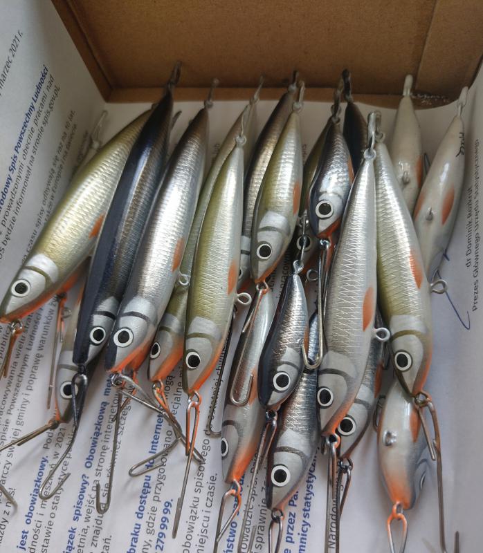 Zybi81 Opublikowano 9 Sierpnia 2020 Autor Zgłoś Udostępnij Opublikowano 9 Sierpnia 2020 (edytowane) Dawno czegoś nie strugałem ale zostawię to sobie na zimę. Tymczasem odlałem kilka woblerów które kieruję głównie pod pstrągi. Ale wiadomo jak jest z przynętami okonie i inne rybki napewno w nich zasmakują.Materiał żywica 63mm ok 5,2 grama , tonące. I coś do swojego pudełka. 65mm żywica tonące. Edytowane 9 Sierpnia 2020 przez Zybi81 5 Cytuj Odnośnik do komentarza Udostępnij na innych stronach Więcej opcji udostępniania...
