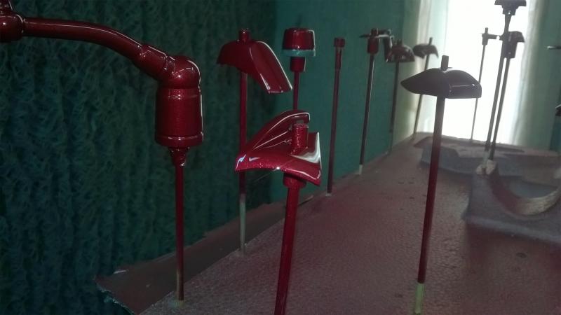 Zabawy ciąg dalszy :) Tym razem, nauczony poprzednim doświadczeniem z lakierem bezbarwnym oraz słuchając rad kolegi Paavo (za co dzięki !) spróbowałem sił z lakierem poliuretanowym. Mam z nim styczność przy robieniu woblerów, ale oczywiście metoda zupełnie inna - zanurzeniowa. W przypadku kołowrotka musiałem znaleźć odpowiednie proporcje lakieru i rozcieńczalnika, tak żeby możliwe było lakierowanie aerografem z dyszą 0,5mm. Po kilku próbach udało się, później poszło już z górki i teraz warstwa lakieru jest naprawdę bardzo wytrzymała :)