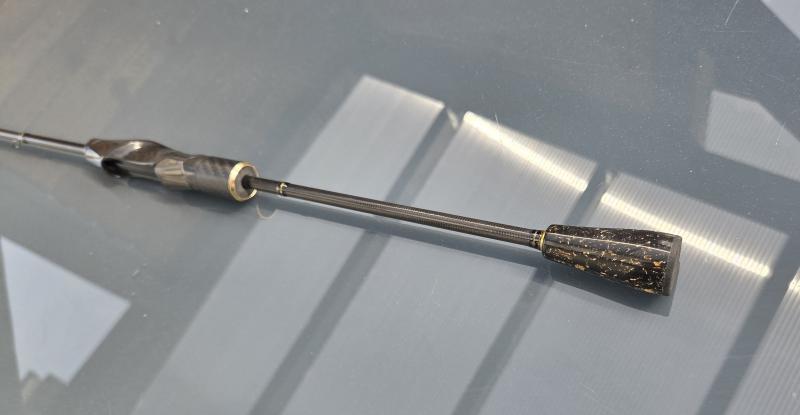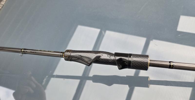 Uzbrojony w przelotki fuji torzite w złotej ramce , uchwyt crs i butt z carbonu.