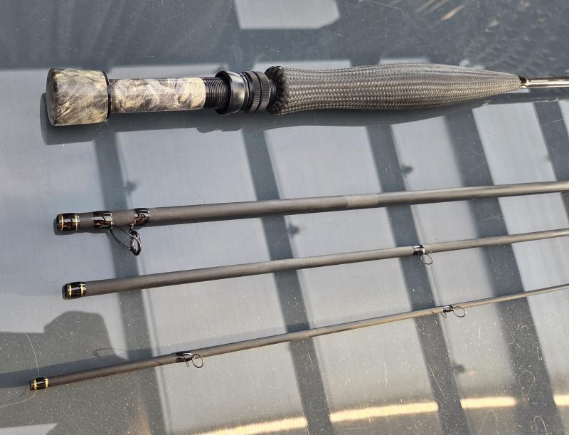 Uzbrojony w przelotki fuji sic, uchwyt fuji vss i rękojeść mix carbonu, pianki I małe elementy żywicy.