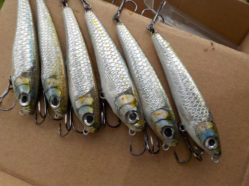 PGr1 Opublikowano 11 Lipca 2018 Autor Zgłoś Udostępnij Opublikowano 11 Lipca 2018 (edytowane) Trzymasz fason , piękne.Dosyć się naczekałeś, to tym razem pewnie z jeden wolny się znajdzie Wczoraj ustawka kolejnych wobków, w tym kilka uklejowatych:Ukleja 70mm, podobne do tych wcześniejszychMniejsze 45mm2 lekkie, prawie pływające...BSy 65mm, minimalnie nie o to mi chodziło z pracą ale tak jest nieźleA tu 4 z wcześniejszych jeszcze się zaszwendadały, eksperymentowałem ze sterem a finalnie tak dostały standardowy PSWszystkie z jakiegoś ciemnobrązowego (po lakierowaniu) egzotycznego drewienka, pełen stelaż żywicą zalany, wszystko alu oklejone i jak zawsze farbkami upyprane Edytowane 11 Lipca 2018 przez *Hektor* 24 Cytuj Odnośnik do komentarza Udostępnij na innych stronach Więcej opcji udostępniania...