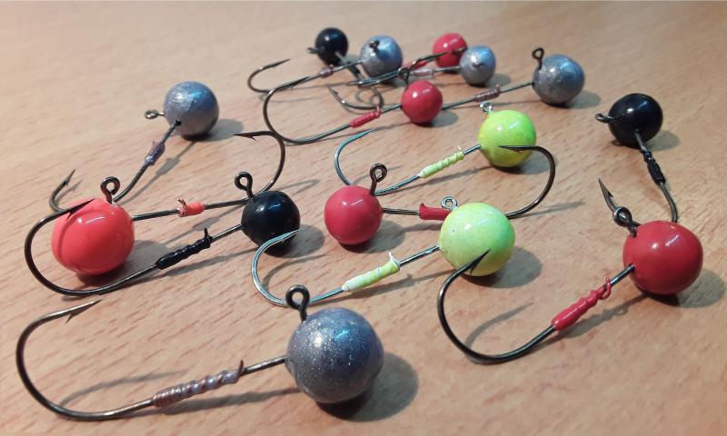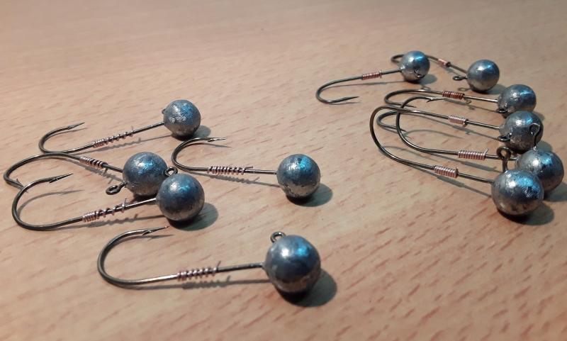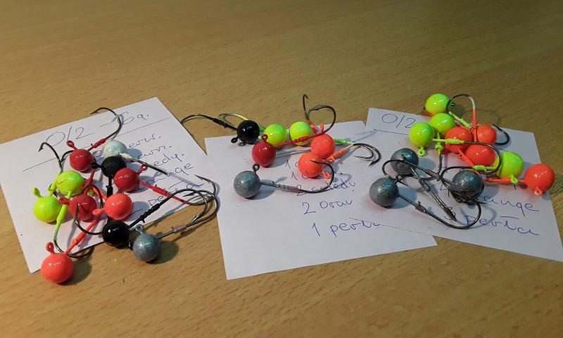 Remicki Opublikowano 13 Grudnia 2018 Zgłoś Udostępnij Opublikowano 13 Grudnia 2018 Delikatne zbrojenie silikonowej drobnicy (...i nie tylko).-Zmodyfikowany kołnierz główki jigowej- W ostatnim sezonie sporo łowiłem gumami wykonanymi przez naszych jerkbaitowych artystów.Przy okazji użytkowania tych arcydziełek, udało mi się wpaść na pewne udogodnienie,które ominęło wszelkie problemy spotykane przy uzbrajaniu delikatnych gum.Większość główek jigowych, odlewana jest z kołnierzami o grubych pierścieniach klinujących.Silikonowe rękodzieło, wiernie odwzorowujące narybek, to w większości delikatne konstrukcje.Jeśli przyjdzie nam używać takich gum, to gruby kołnierz klinujący,skutecznie zdefasonuje naszą realistyczną przynętę w bezkształtną kluskę.Krokiem we właściwym kierunku jest nabycie główek bez kołnierza ale tu spotkamy następnyproblem, zsuwanie się wyrobionej gumy z haka. Znanym i stosowanym patentem,który zabezpiecza nam tą kwestię jest, punktowe nawinięcie żyłki, parę milimetrów za główkąi zabezpieczenie tak wykonanego węzełka, kropelką szybkoschnącego kleju.W ten sposób powstaje na drucie, "grudka" na której do pewnego momentu,z powodzeniem możemy unieruchomić naszą gumę. Oczywiście, po jakimś czasie,guma jednak się wyrobi. Ten czas zależnie od okoliczności, może być irytująco krótki.Np. podszczypujące okonie albo sandacze, mogą skrócić nam go paru brań.Chciałbym podzielić się z Wami pomysłem na zbrojenie delikatnego silikonu,w sposób trwały i nie psujący prezentacji przynęty. Kołnierz klinujący z nawiniętego drutu,o którym mowa, w tym sezonie był testowany przez cały rok;Od drobnicy na małych hakach nr.6,4,2, po małe i średnie gumy zbrojone na hakach ...do nr.0/5.Patent, pozwolił mi kompletnie zapomnieć o wcześniejszych niedogodnościach,a łatwość z jaką można go szybko modyfikować, pozwala skupić się na łowieniu,bez zawracania sobie głowy majsterkowaniem, tuż nad miejscówką czujnego klenia czy pstrąga. Do wykonania zaczepów na hakach 0/2, użyłem miedzianego drutu 0,5mm.Zależnie od delikatności zastawu, grubość drutu dobierzemy odpowiedniodo naszych przynęt. Tak np. dla haków 6,4,2 średnica nawiniętego drucika to 0,2mm.Do zabezpieczenia kołnierza "na sztywno", możemy użyć całej gamy różnych klejów. Zamiast klei, wybieram farby proszkowe. Tak to wygląda przed wypieczeniem w piecu.Na tym etapie trzeba poczyścić oczka z farby. Wypieczone będą, nie do ruszenia! Skrobanie z farby - kwadratowy iglak jest idealny do tej roboty.Przeszlifowanie "ostrogi" pozwala na lepsze trzymanie gumy.(kolor farby: "Perła" -cienka warstwa) Po wypieczeniu to bardzo trwałe stopery.Zadzior w wymaganej sytuacji nad wodą, zawsze można przyciąć.A jeśli będziemy potrzebować go z powrotem, wystarczy wydłubać nożykiem,by odwinąć z kołnierza jedną omotkę drutu i wyprofilować nową ostrogę.W moim odczuciu, jest to sposób trwały i skutecznie trzymający przynętę.Ale przede wszystkim -wygodny! Można bardzo szybko dostosować długość zadziora,do trzymania relatywnie dużych gum, a chwilę potem, po przycięciu go, zbroić nań małe,delikatne przynęty. I można to powtarzać, dopóki starczy nawiniętego drutu.Przyjemnego łowienia ! 20 Cytuj Odnośnik do komentarza Udostępnij na innych stronach Więcej opcji udostępniania...