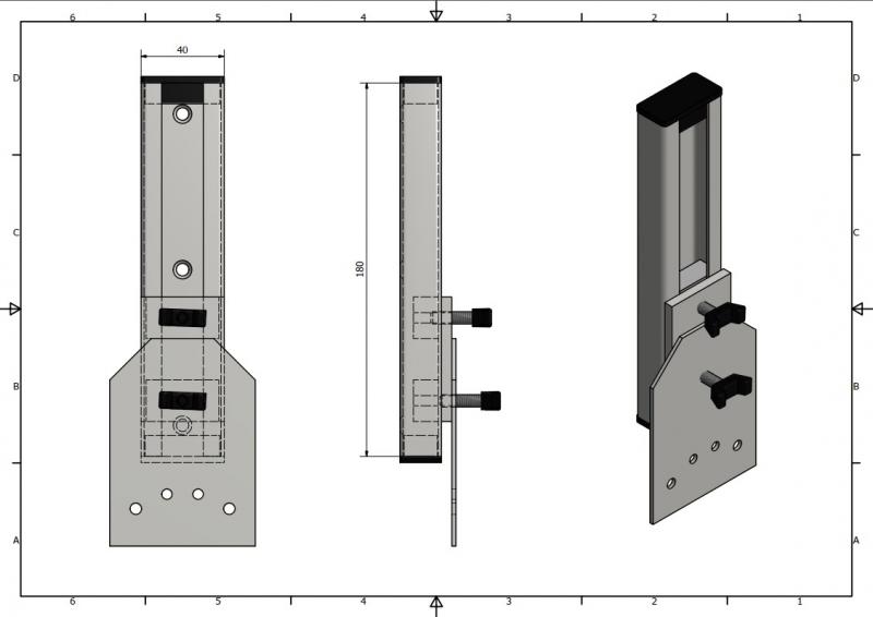 Popełniłem coś takiego jak na obrazku. Ciut ulepszona konstrukcja tego Pana z alledrogo, ponieważ mocowanie jest na dwa motylki i w profilu są dwie podkładki klatkowe, które zdecydowanie poprawią stabilność. Ci co mają wersję z allegro, pewnie też zauważyli, że uchwyt w trapez się buja na boki i trzeba go fest mocno przykręcić, żeby nie latał. Tutaj tego problemu nie będzie. Wszystko z kwasoodpornej stali 1.4301