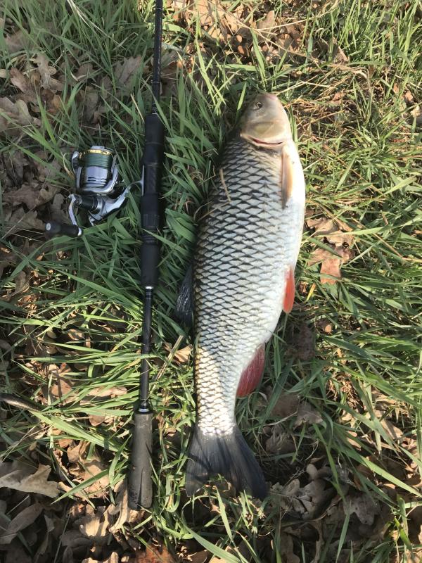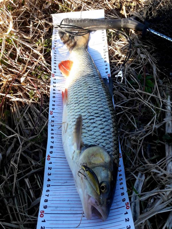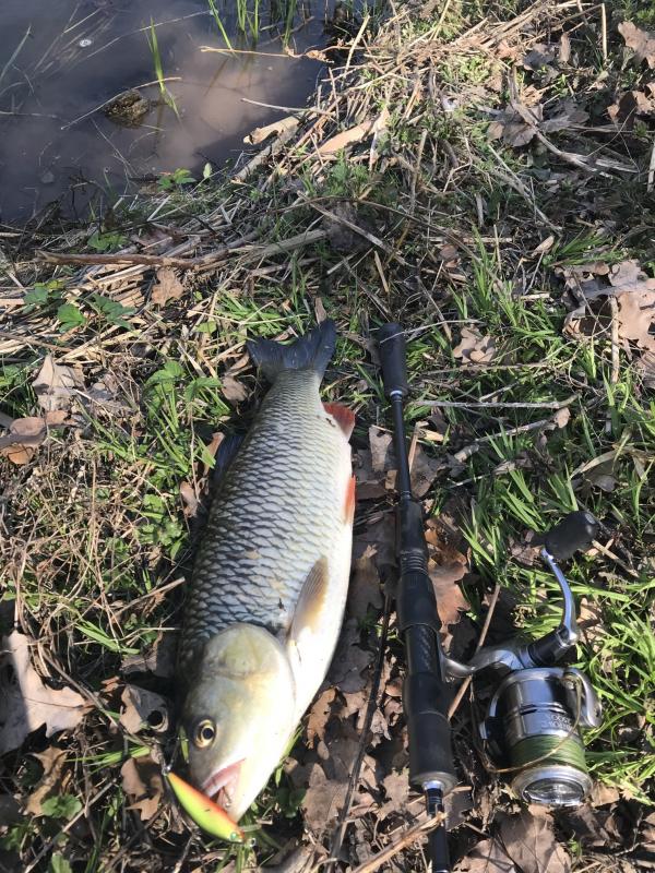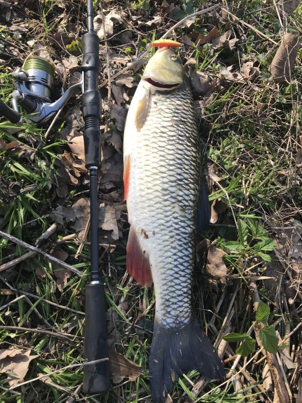 Kleń z muchówki złowiony na chrabąszcza od kolegi @luk-hna,  a drugi na własnego smużaka.