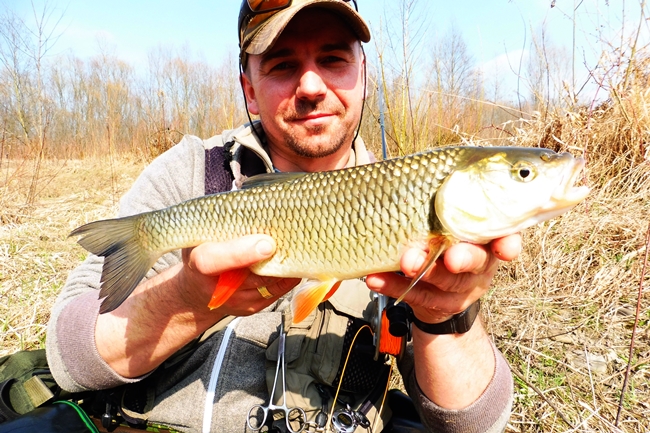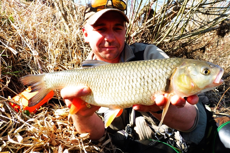 Pierwsza ryba sezonu to troć 60 cm, potem kilka drobnych kleni , kilka przyłowionych świnek a wczoraj fajny pstrąg. Łowiąc wczoraj zauważyłem że kluchy zaczęły zbierać z powierzchni  :wub: