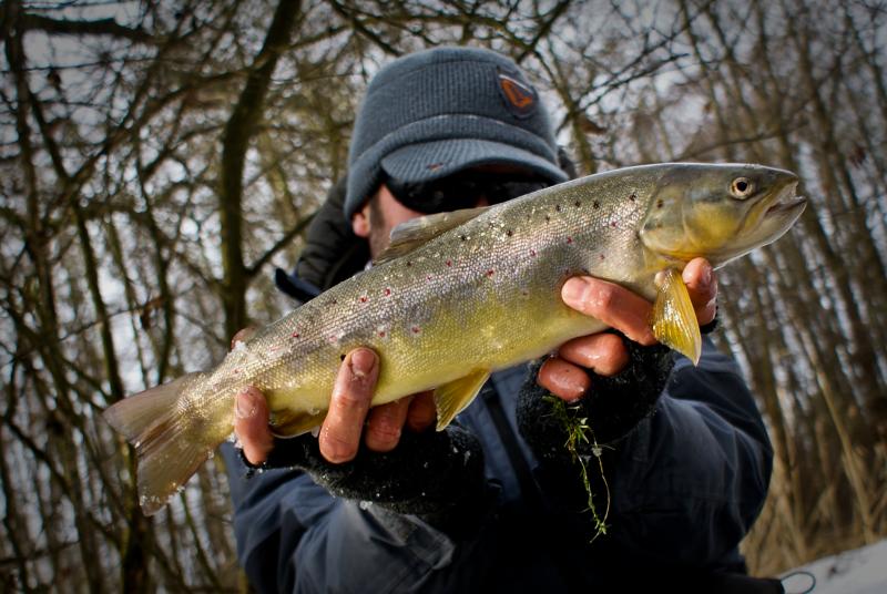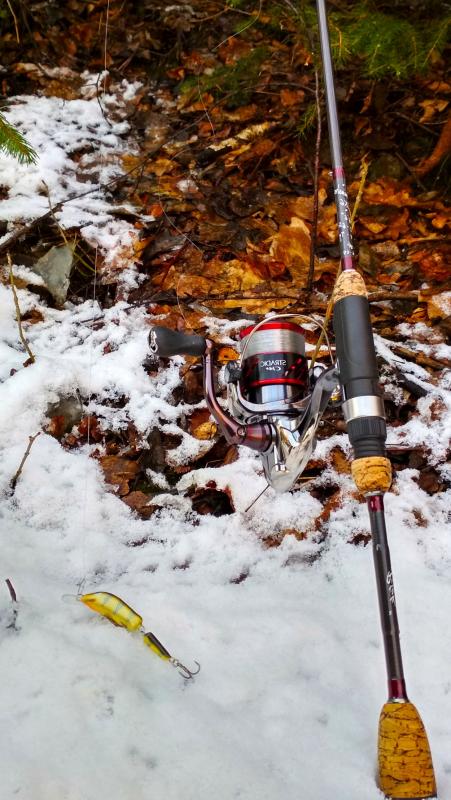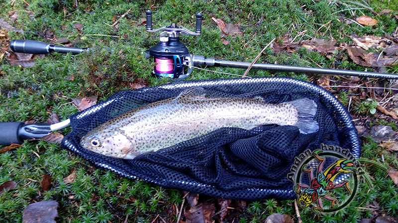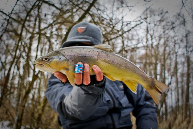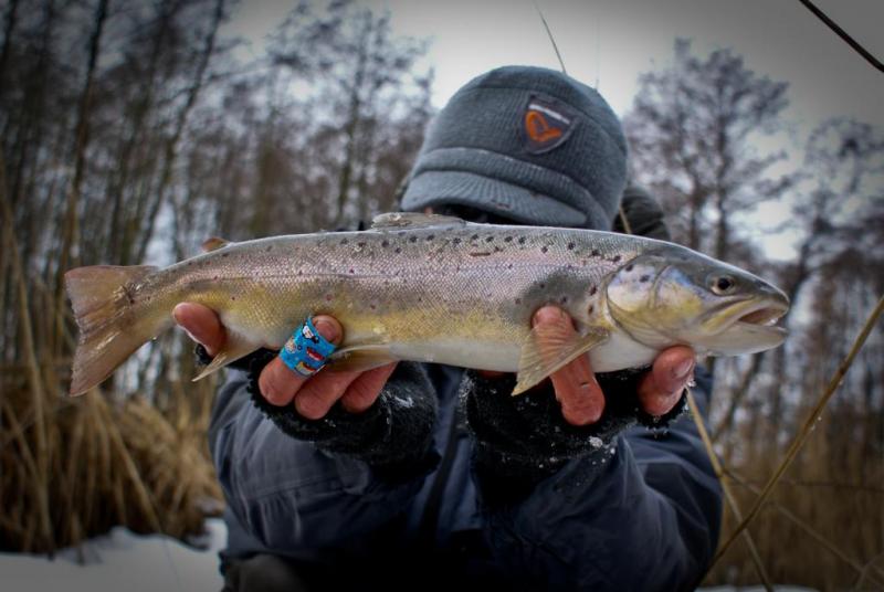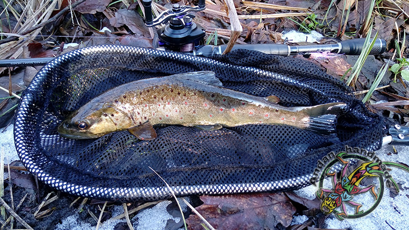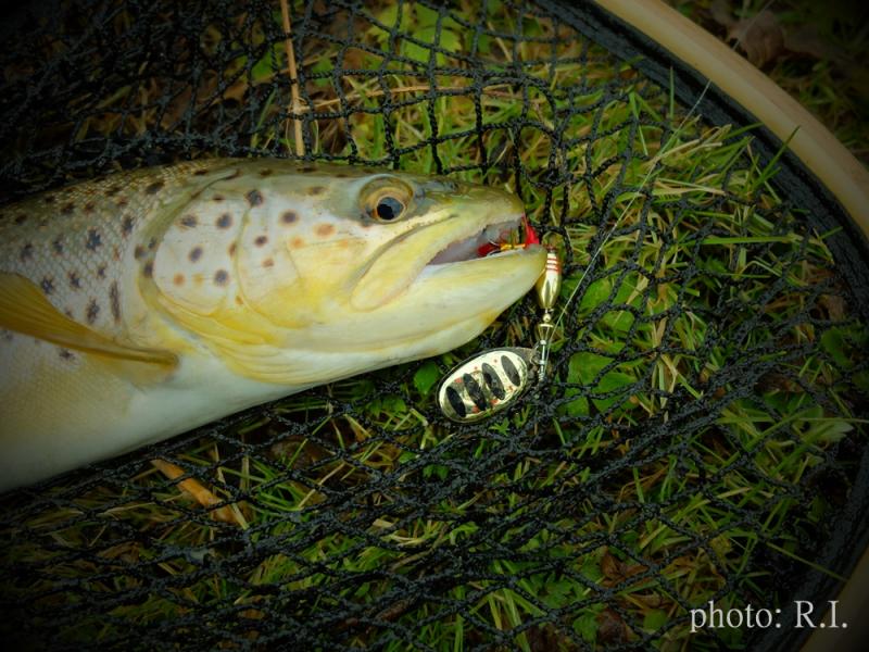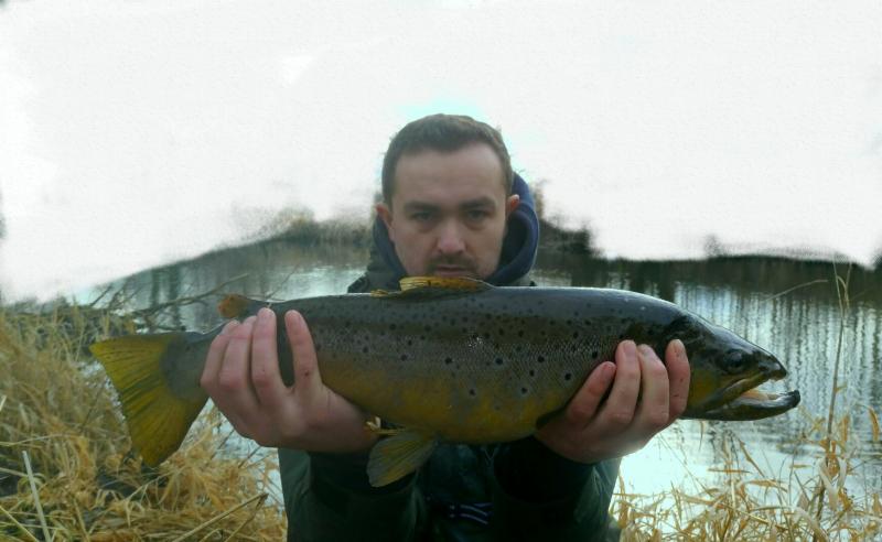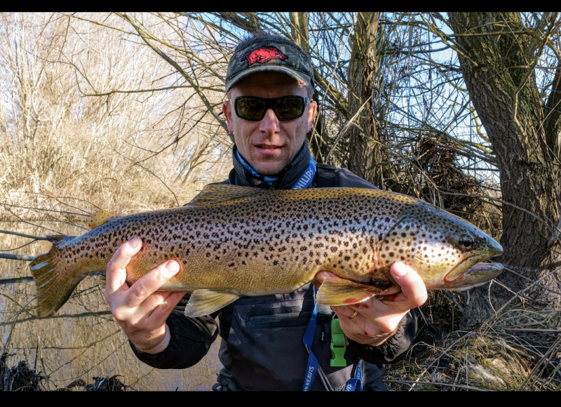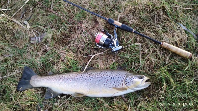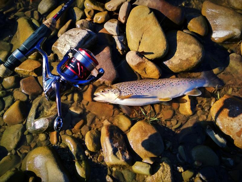 Krótki wypad na jedną z rzeczek w mojej okolicy ,chociaż warunki trudne, trafiło się  jedno branie poprzedzone dwoma puknięciami w wobka . Kijek na blanku Batsona RX6 do 7g , kołowrotek Stradic Ci4+ i żyłka 0.18 Stroft . Pstrąg 40cm w świetnej kondycji , po krótkim holu wrócił do wody :wub:  :wub: .