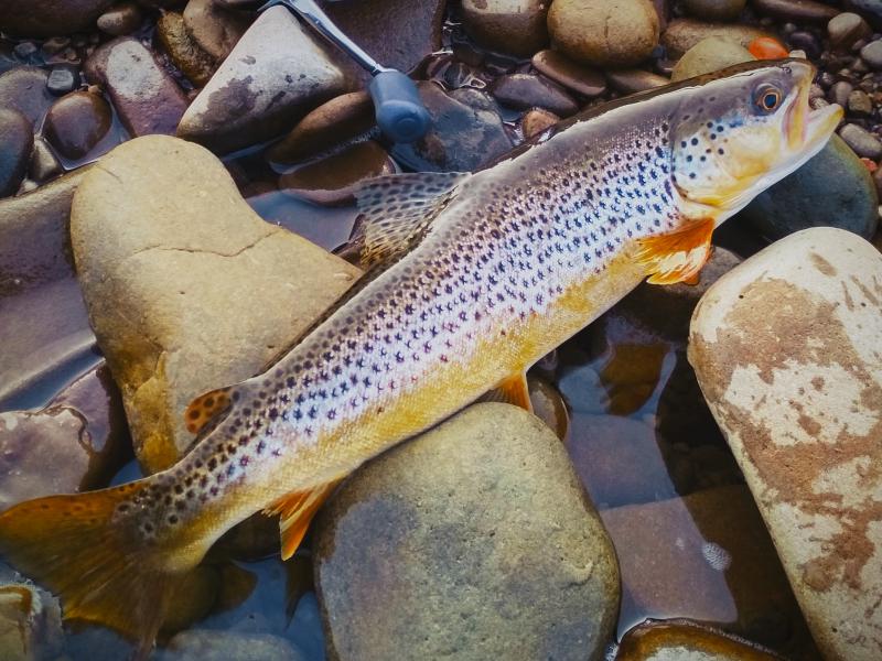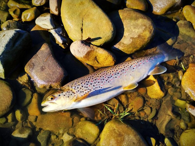 Odwiedził mnie Grzegorz, podreptaliśmy pstrągowymi ścieżkami, udało Nam się zobaczyć taką rybę: